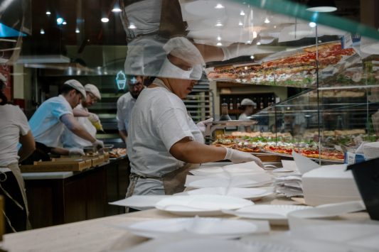 People work in a restaurant in New York City on Dec. 16. Photo by Spencer Platt/Getty Images.