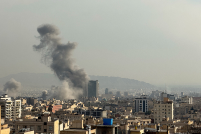 Plumes of smoke rise following reported explosions in Tehran on March 2, after the United States and Israel launched strikes against Iran on Feb. 28. Photo by Mahsa / Middle East Images / AFP via Getty Images.