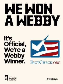 Editor’s note: FactCheck.org does not accept advertising. We rely on grants and individual donations from people like you. Please consider a donation. Credit card donations may be made through our “Donate” page. If you prefer to give by check, send to: FactCheck.org, Annenberg Public Policy Center, P.O. Box 58100, Philadelphia, PA 19102.